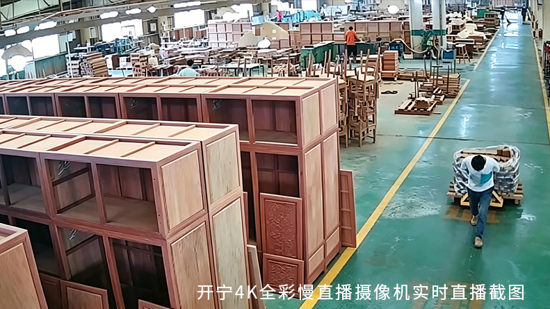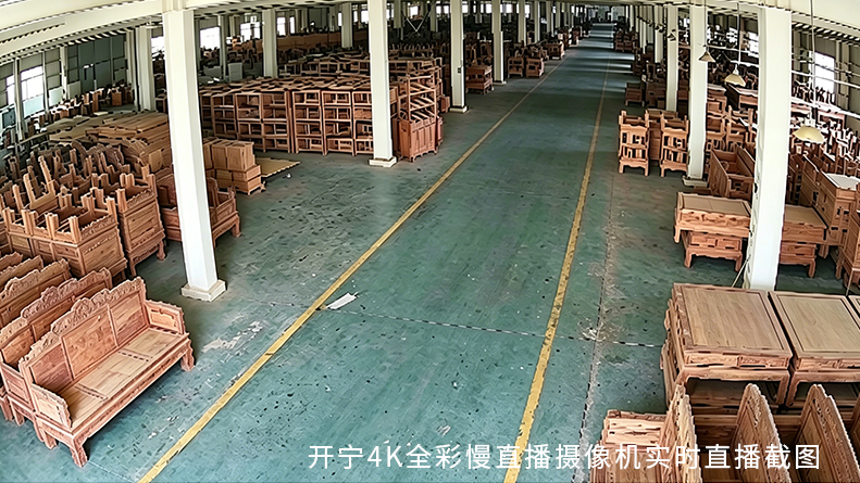 开宁4K高清慢直播摄像机精准适配红木工厂的复杂环境,无论是粉尘较多的开料车间,还是湿度较高的涂装区域,都能稳定运行,清晰捕捉每一个工艺细节。通过多平台同步推流,让全国各地的客户都能随时“云逛厂”,直观了解工厂的生产实力与工艺水准,彻底打消心中的顾虑。